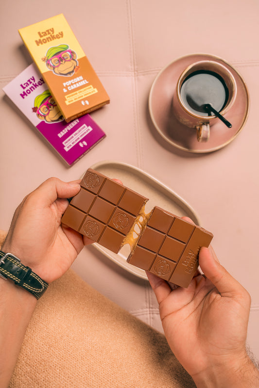Lazy Monkey is all about fun, bold flavors crafted with premium Belgian chocolate and made locally in the UAE. We mix unexpected ingredients to give you a playful twist on traditional chocolate, so every bite is an adventure!